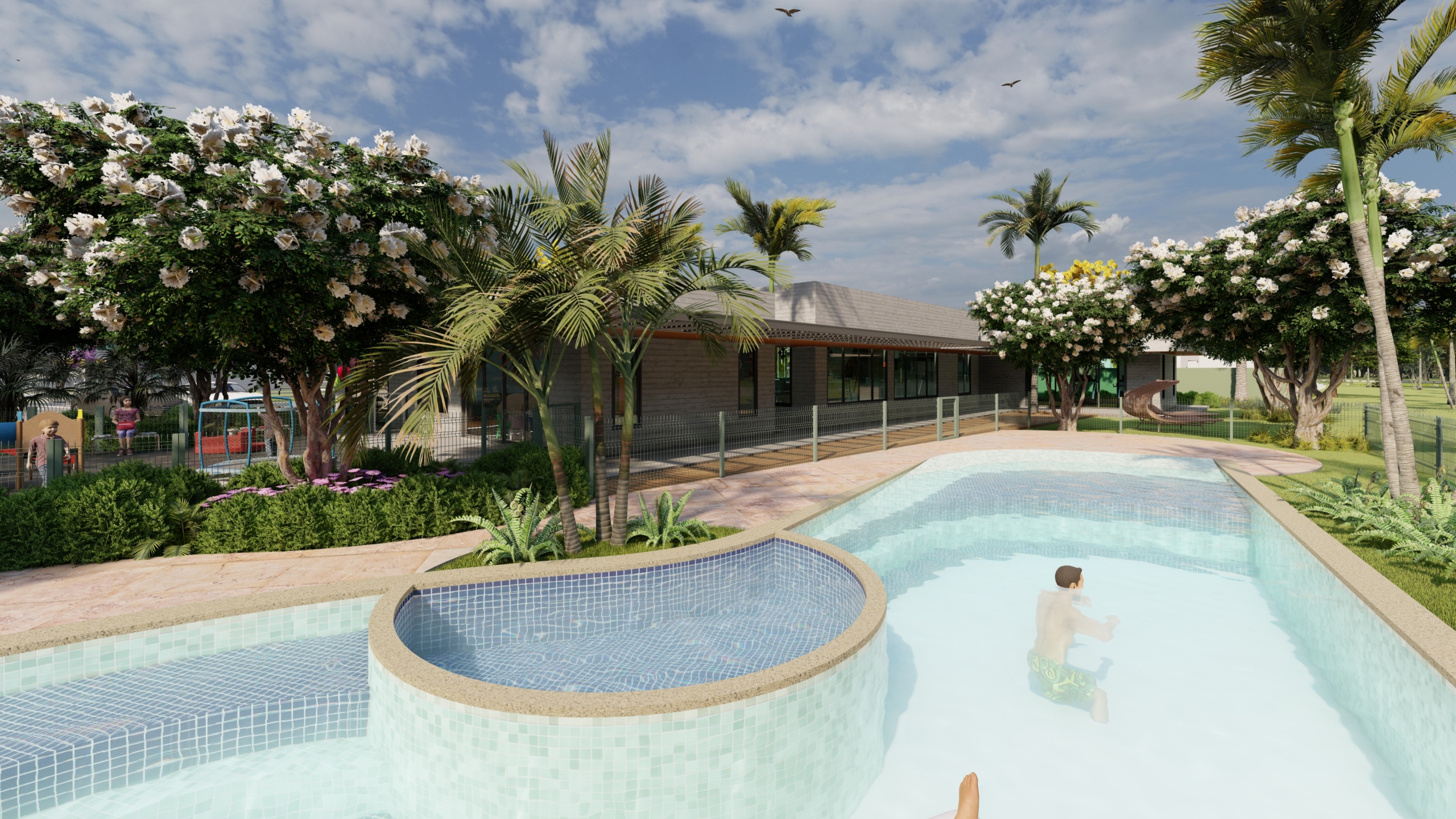 Com projeto urbanístico organizado e infraestrutura completa, o condomínio conta com portaria com controle de acesso, ruas pavimentadas, rede de drenagem, iluminação pública e áreas verdes que valorizam o ambiente e o convívio entre os moradores.